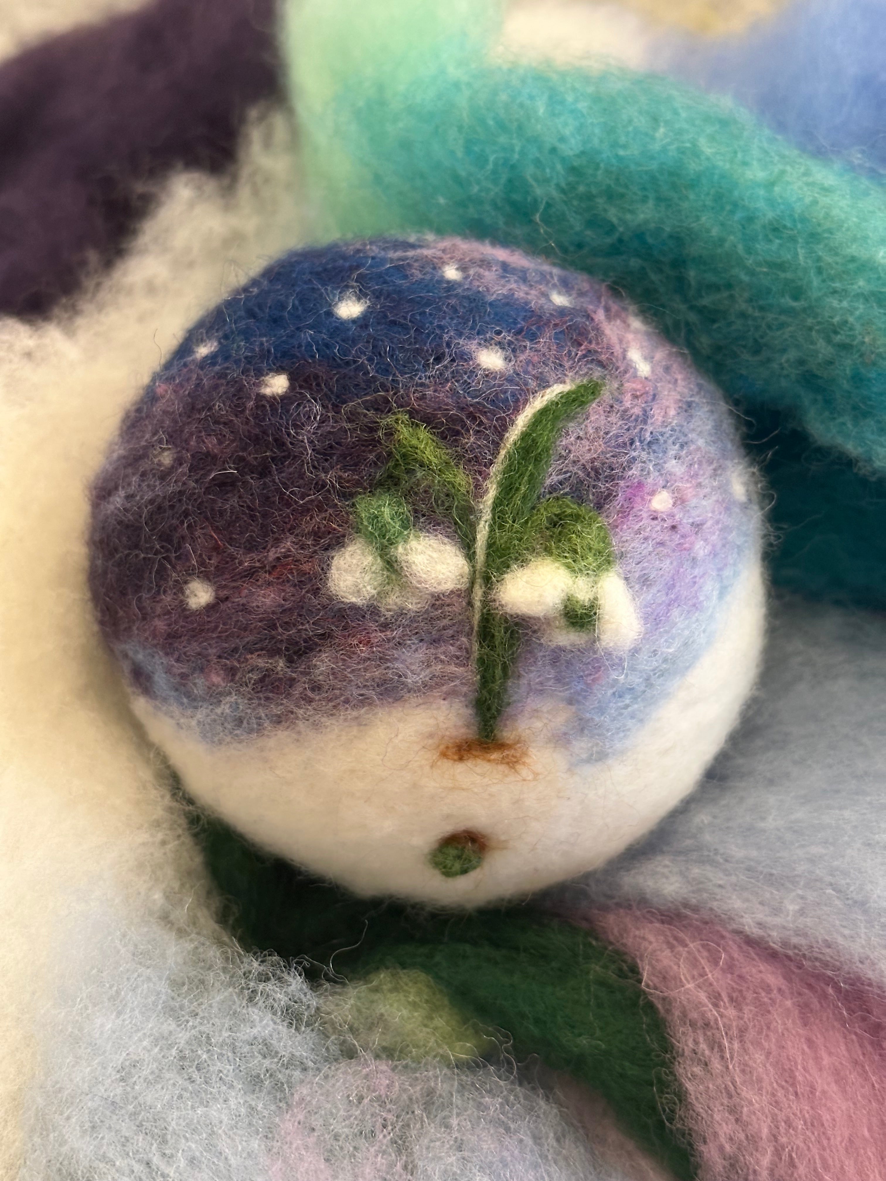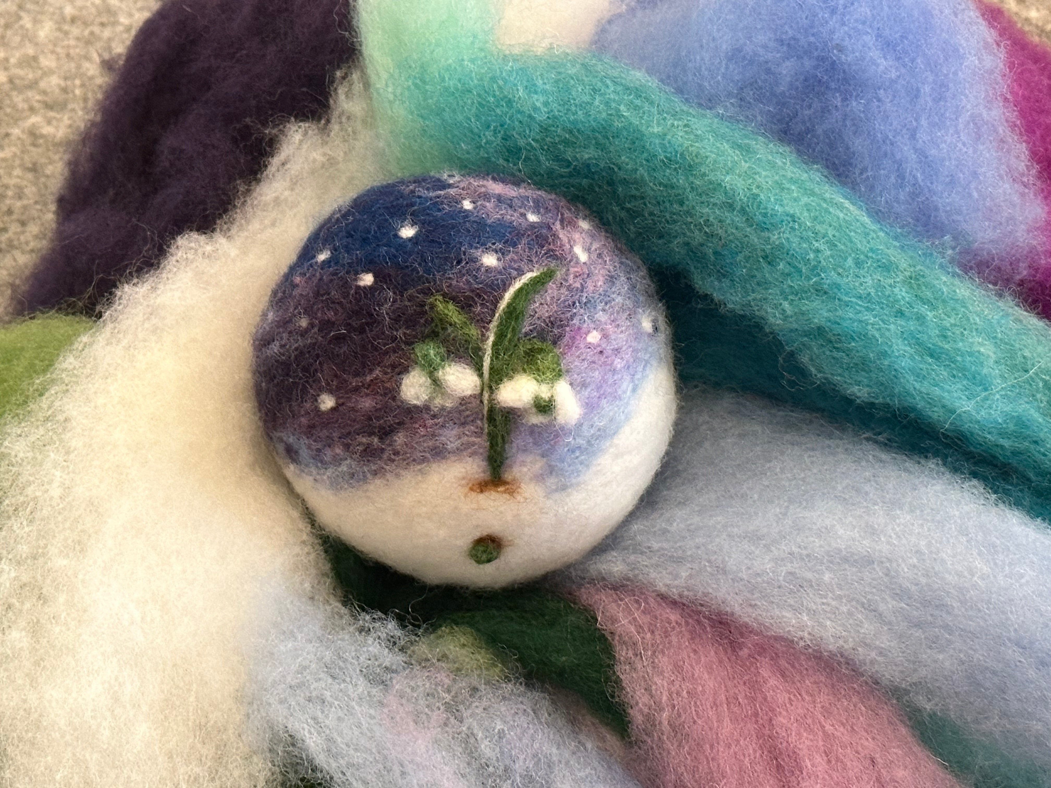 You will be instructed on how to use the felting needle and manipulate the wool fiber to create a seasonal or holiday-inspired ornament. The tools and materials are included in the kit, and you take home what you created.